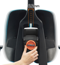 ガスシリンダーで簡単に座面の高さを調節できます。大腿部と床が平行になる位置が身体に負担のかからない高さの目安です。